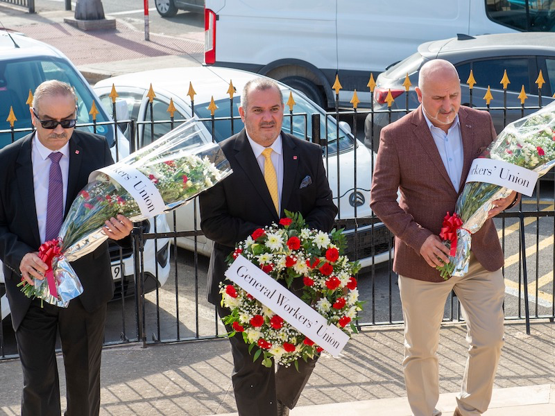 Today, the General Workers’ Union celebrates 79 years of work in favour of the most vulnerable, workers and members. In front of the workers’ memorial in Msida, the GWU administration and secretaries laid flowers as a symbol of condolences and appreciation and observed a minute of silence for their partner Tony Zarb, the giant of the trade union movement and the friend and sufferer of workers.